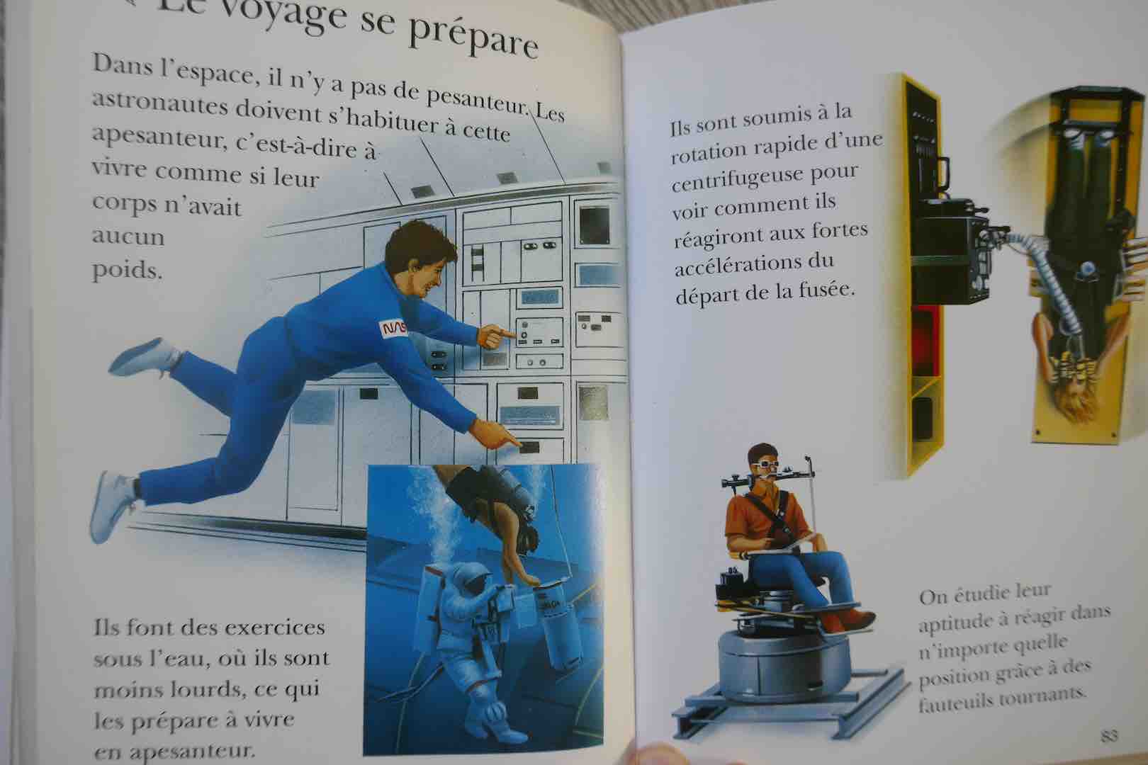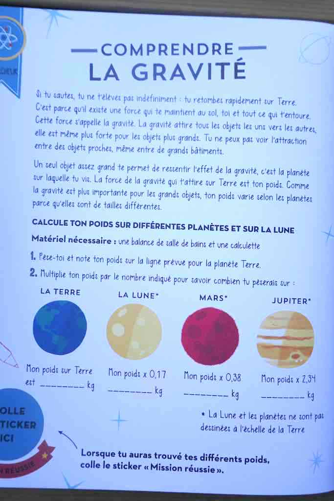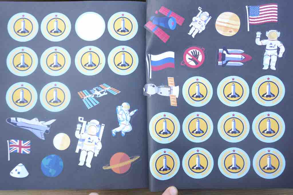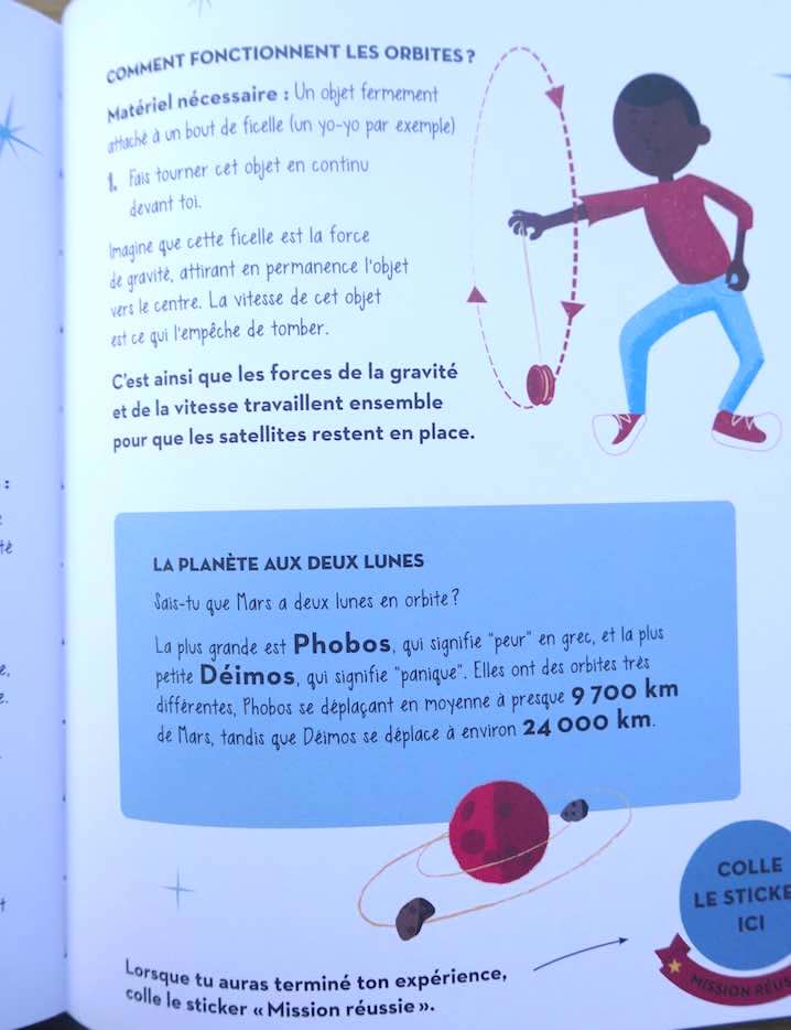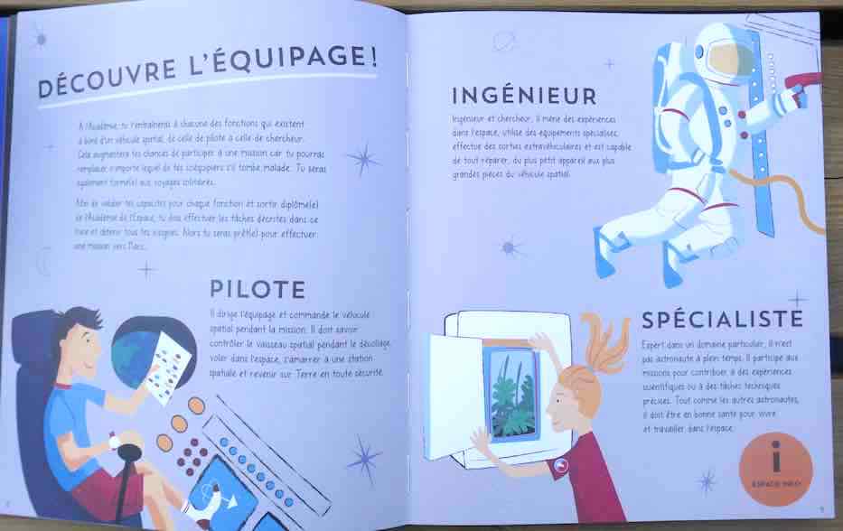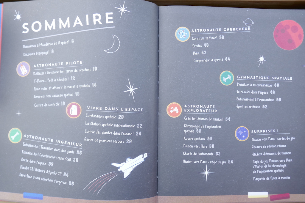 Un jeu « mission vers mars » (photo 2 du diaporama), une maquette de véhicule spatial à monter et des stickers complètent ce livre-jeu bien conçu. Les petits astronautes en culottes courtes (sous la combinaison) vont adorer.