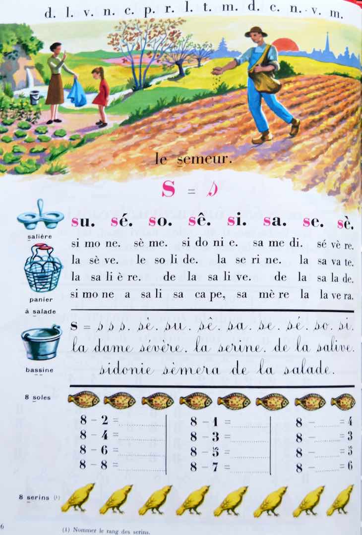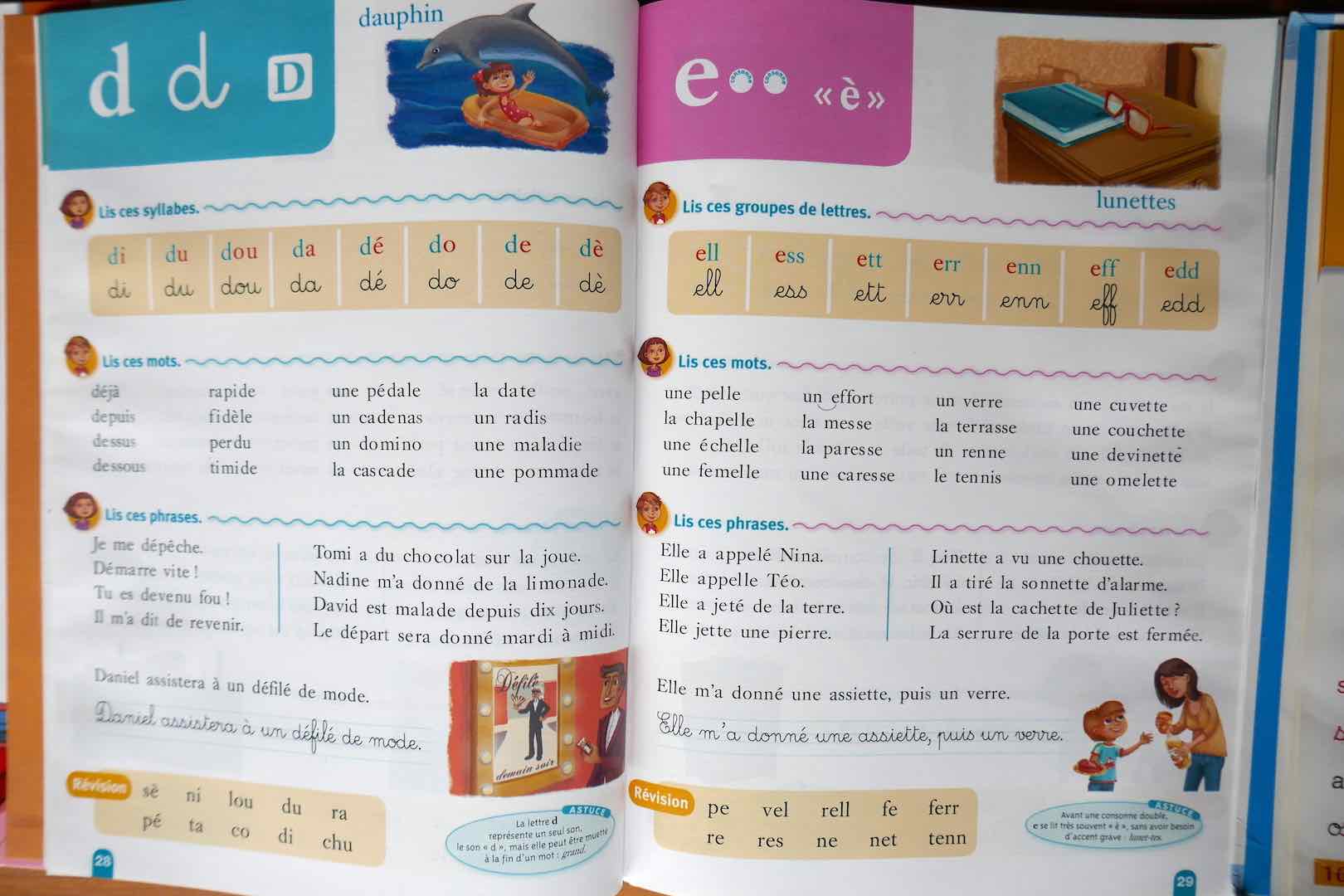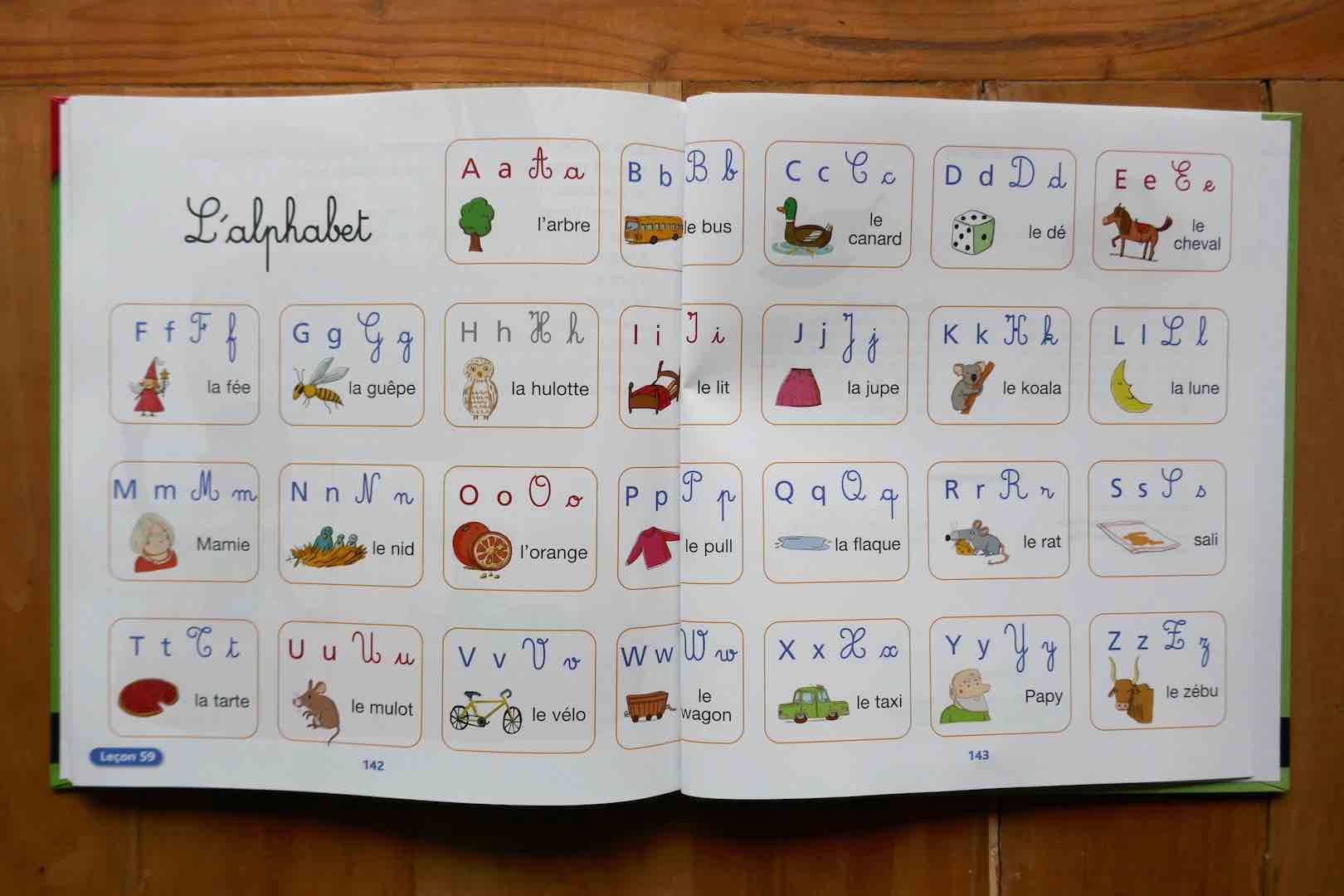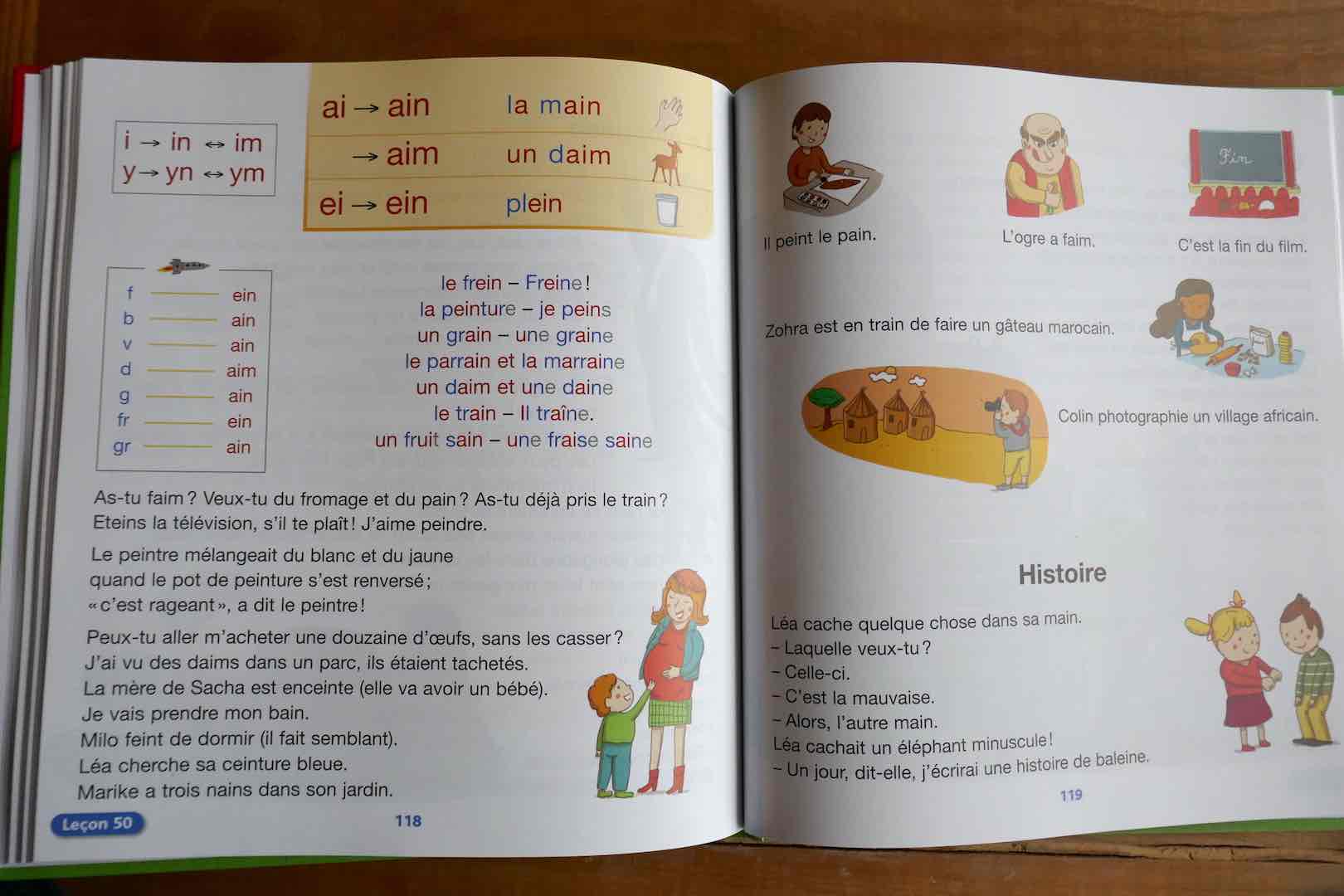 Eh oui, les parents (qui ont appris à lire avec ce livret sans aucun souci) reprennent ce qui fonctionne. Un peu vieillot pour certains, les histoires gardent le charme d’antan (et les enfants aiment bien savoir comment c’était avant). Chaque page présente la lettre, les syllabes, et les mots, mais également les chiffres et les premiers calculs. La présentation est dense. Votre enfant adhèrera ou pas. C’est donc un bon condensé qui permet de s’y référer facilement. Deux remarques : les soustractions sont présentées sans explication (l’enfant apprendra donc « 5-2 = 3 » et non pas « pour aller de 2 à 5, je dois rajouter 3 ». Et les sons ne sont pas détaillés. Petit rappel : en classe, votre enfant apprend à prononcer les lettres selon le son et non selon leur nom. Par exemple, F ne se prononce pas ÈF mais ff (comme en soufflant).