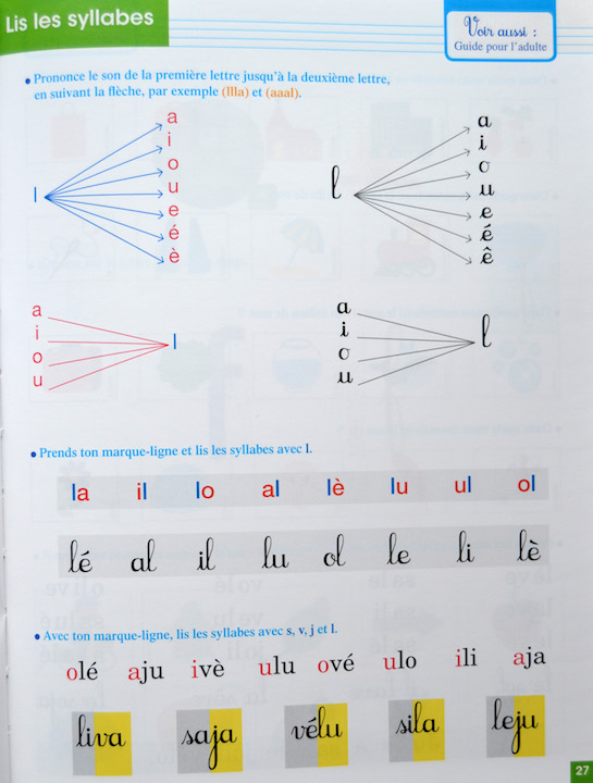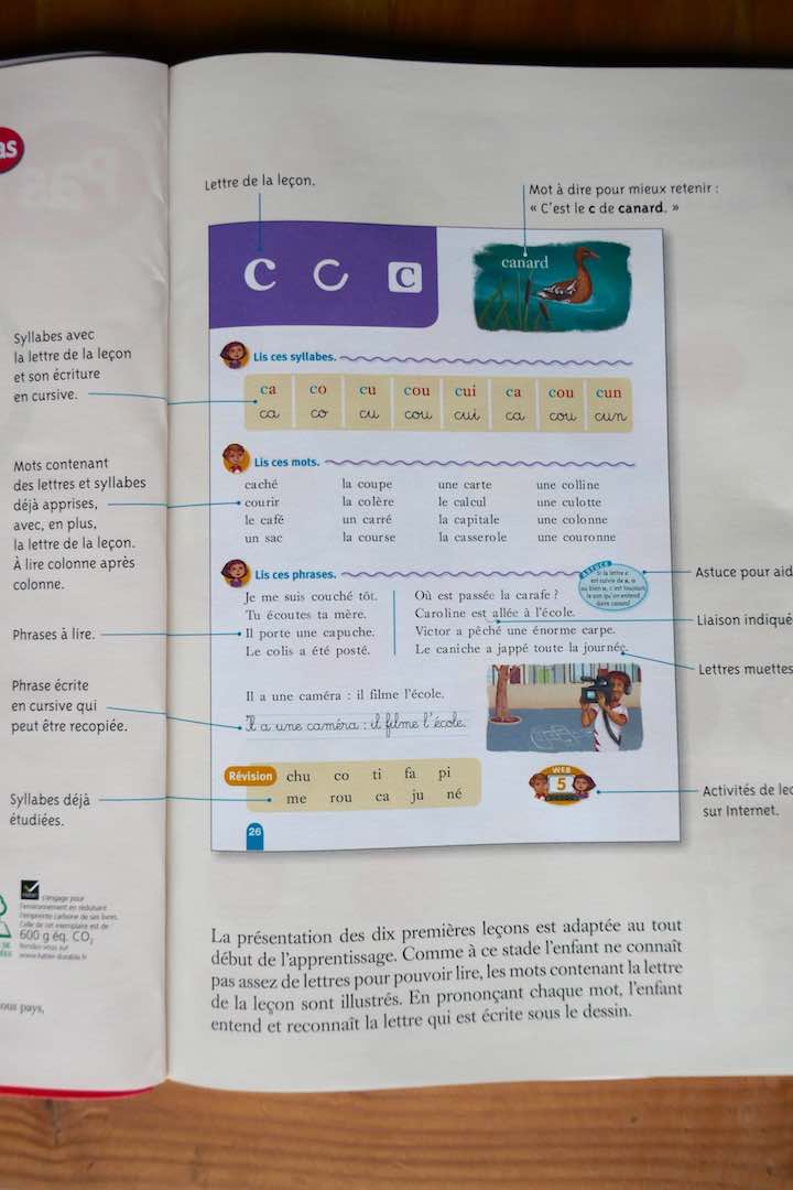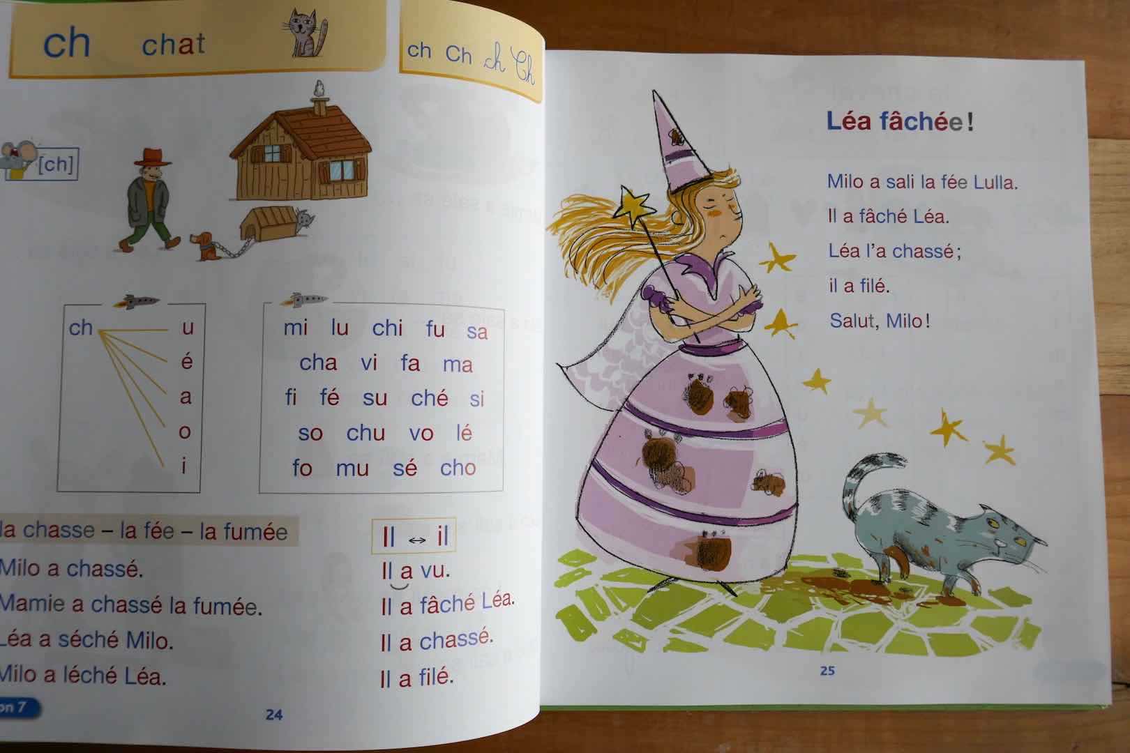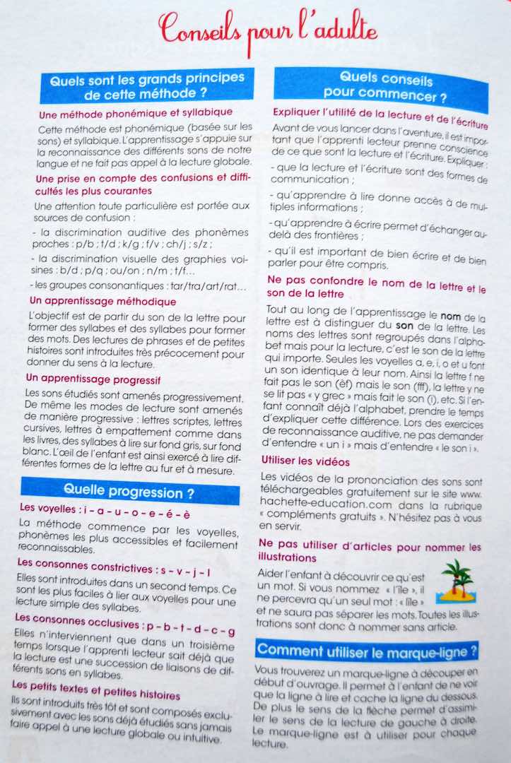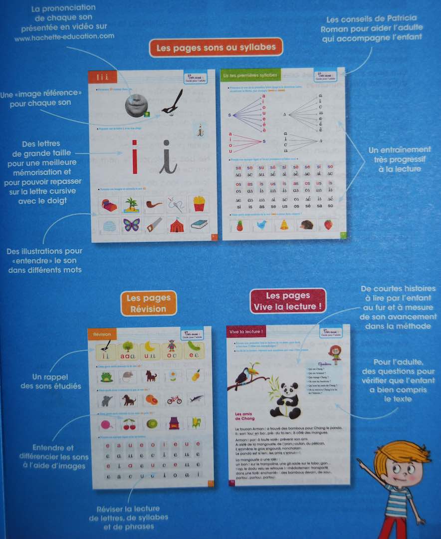Ce livre est apprécié par les enseignants utilisant une méthode syllabique. Ceci pour plusieurs raisons : il est présenté sous forme de leçons numérotées, la collection comprend de nombreux livres de petites histoires et plusieurs cahiers d’exercices. Très classique, efficace lorsque les sons et le travail sur les lettres ont été bien vus en maternelle. Il est plus adapté pour la classe que pour la maison dans le sens où il ne reprend pas les bases.