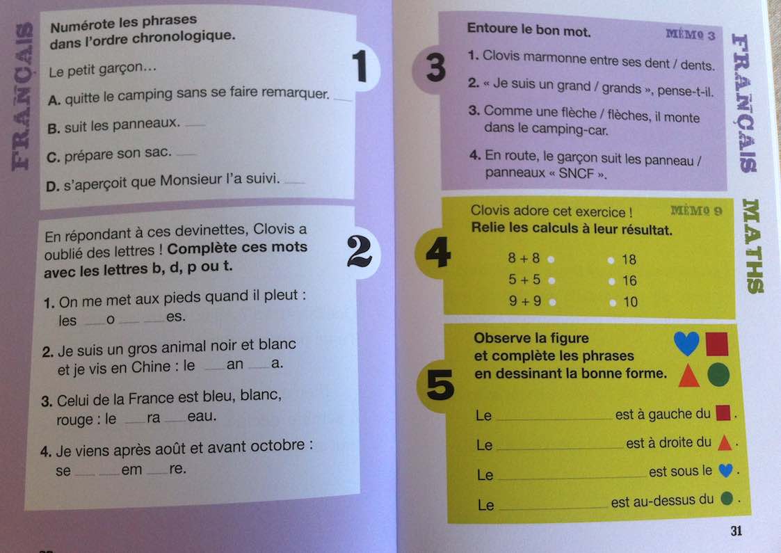 – Pour chaque niveau, les exercices de français et de mathématiques collent bien au programme (l’auteure est professeure des écoles).
