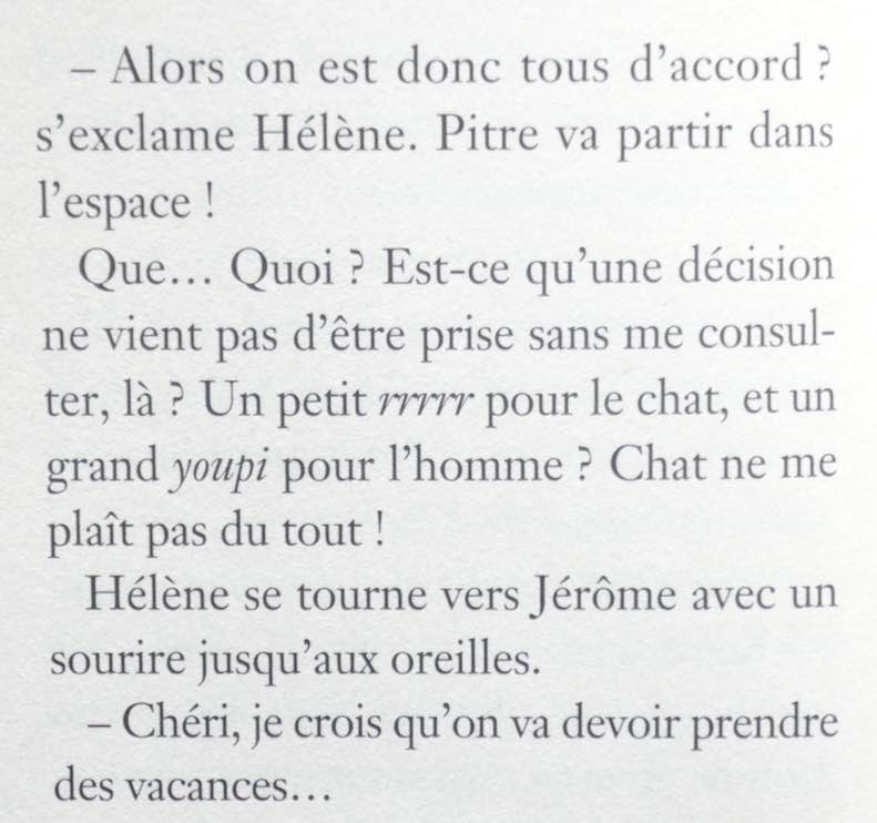 Nom d’une gamelle pleine de croquettes ! Quand trouve-t-il le temps de faire la sieste ?! Pendant la mienne, je ne dors que d’un œil. Du coup, je peux lire ces petits romans jeunesse décrivant les habitudes parfois étranges des humains. C’est drôle et facile à lire sans être trop simpliste.